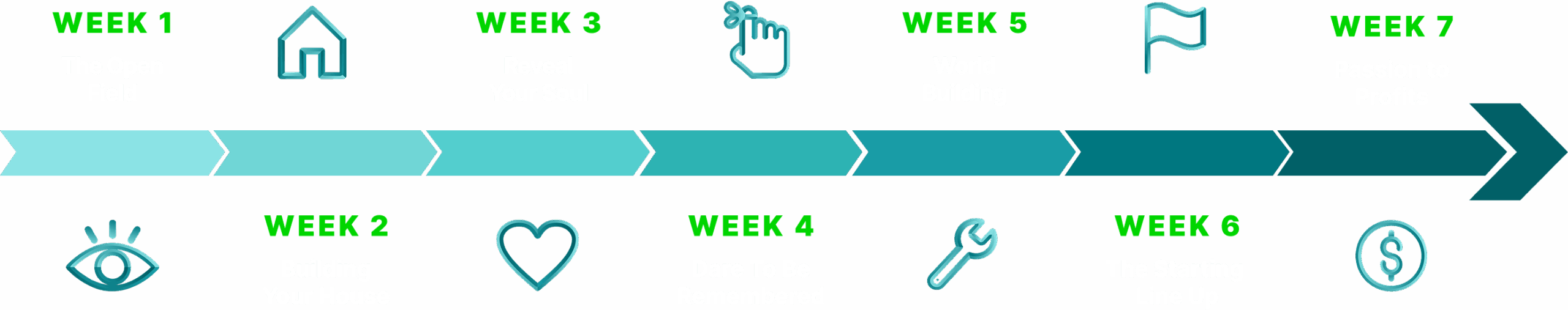 Each week, you’ll unlock a new step in building the business of you.